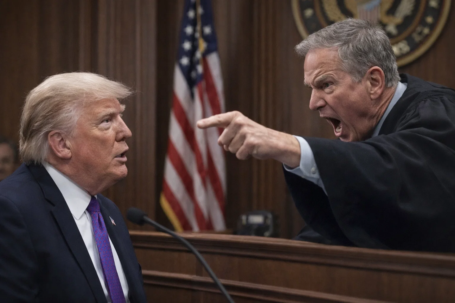 At the center of the storm stood Donald Trump, flanked by members of his legal team, their expressions focused but increasingly strained as the proceedings unfolded.